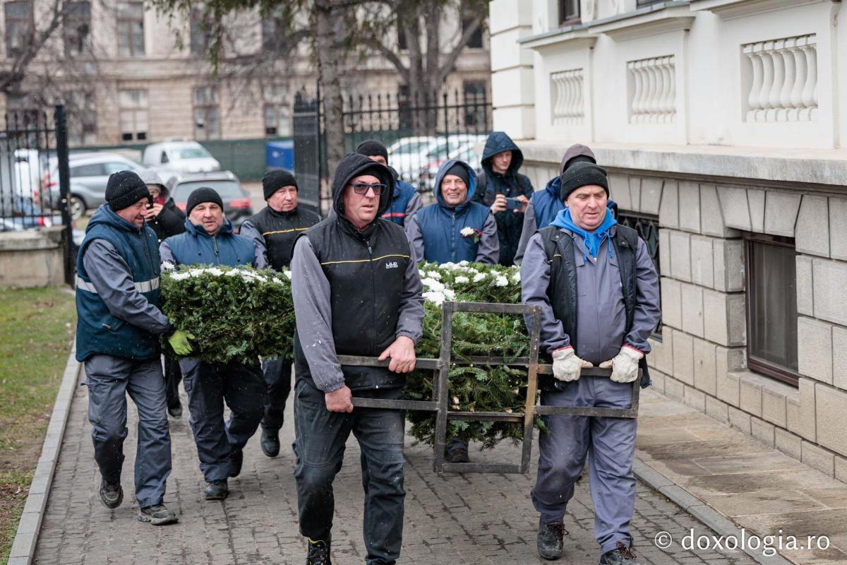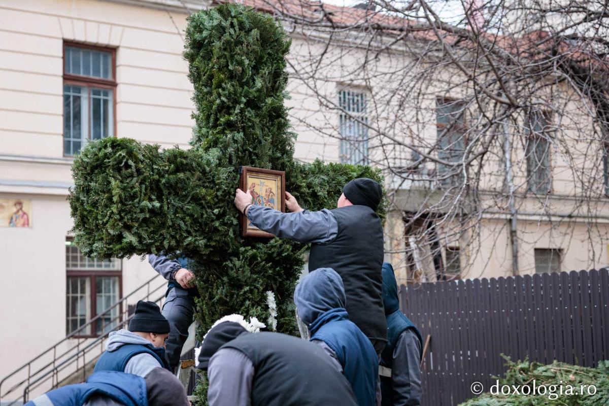 Luni, 5 ianuarie 2026, în curtea Catedralei Mitropolitane din Iași, crucea de cetină de brad a fost împodobită în cadrul pregătirilor pentru sărbătoarea Botezului Domnului. Gestul, repetat an de an, marchează apropierea Bobotezei și anticipează momentul sfințirii apei, în jurul căruia se adună clerul și credincioșii.
